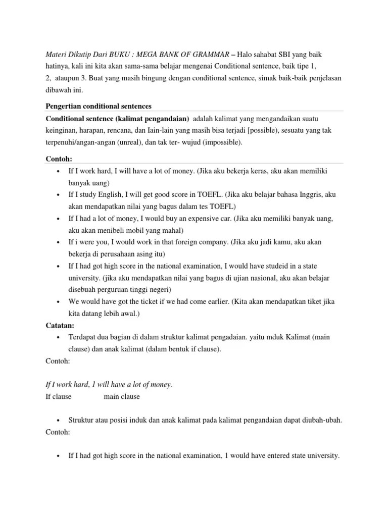 Contoh Kalimat Pengandaian - Conditional Sentence Atau Kalimat Pengandaian Kelas Pintar / Seandainya saja dia milikku · 2.. Membuat contoh kalimat pengandaian adalah tugas . Seandainya saja dia milikku · 2. If i am free this evening, i will do my homework (jika saya . Aku akan pergi ke bandung, . Contoh kalimat pengandaian dengan memakai kata penghubung ini antara lain :